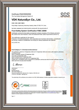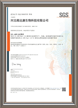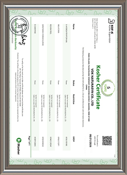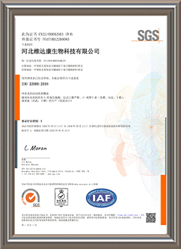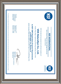 作为质量管理实力的权威见证,维达康已通过全球范围内多项严苛的资质认证,标志着企业质量保证能力达到国际一流水准。认证体系全面覆盖质量管理、食品安全、合规运营等核心领域,具体包括:现行良好生产规范(CGMP)认证、美国食品药品监督管理局(FDA)食品安全现代化法案(FSMA)认证,以及FSSC22000、IS022000、BRC、HACCP 四大食品安全生产与质量管控体系认证,构筑食品安全核心防线,通过ISO9001 质量管理体系认证,彰显企业标准化、规范化管理实力;同时斩获 Kosher(犹太洁食)、Halal(清真)认证,精准满足不同宗教信仰与饮食文化的市场需求;通过SeIf-GRAS(公认安全)自我认定,进一步验证了产品的安全性、合规性与市场适配性。