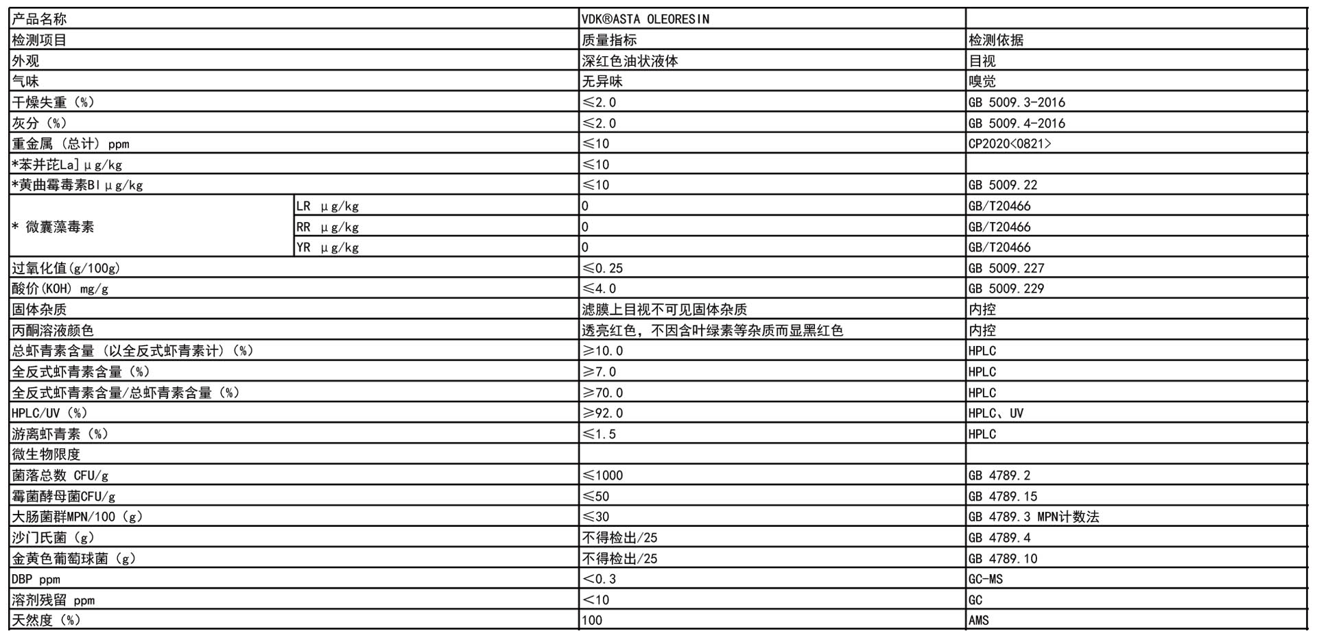 VDK® 酯化态虾青素含量规格,可根据客户需求定制化生产