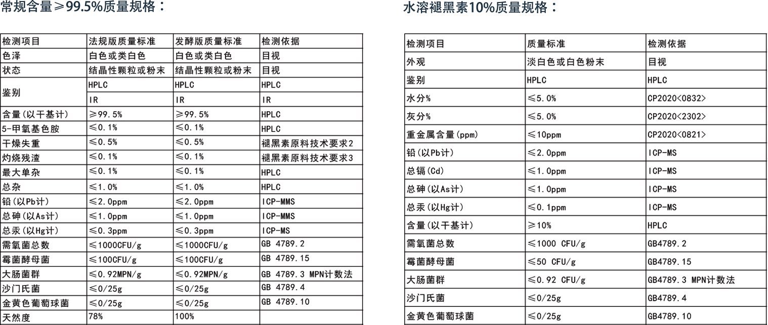 符合《保健食品原料目录 褪黑素》的国家标准,符合USP、BP和EP等国际标准,可提供厂检报告、第三方检测报告及其它产品资格证书。