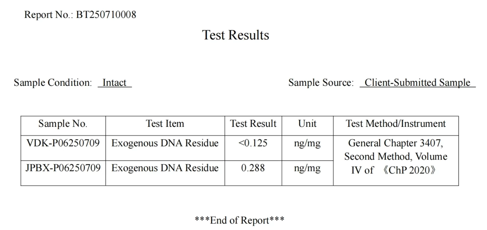 Low Exogenous Nucleic Acid Residue