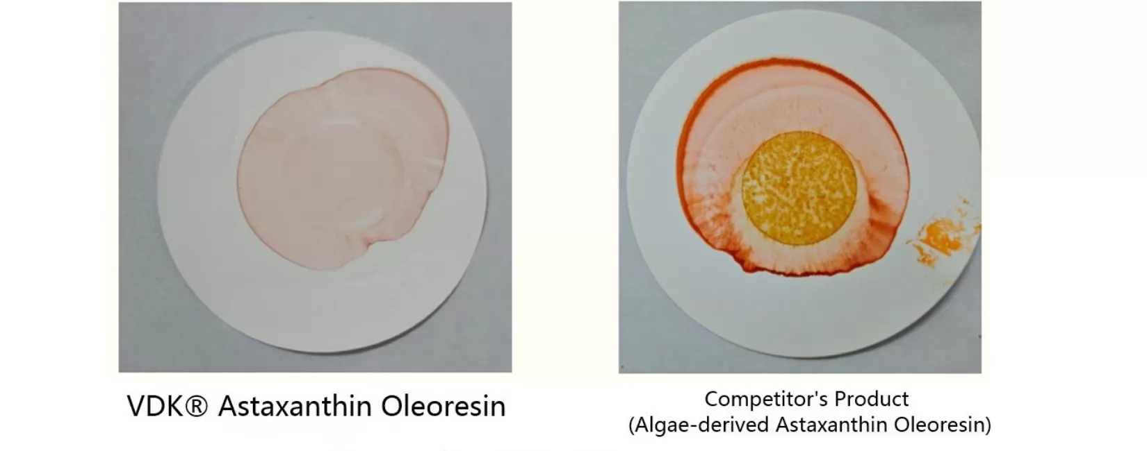 Although VDK®Astaxanthin Oleoresin has a rich color, it still maintains a clear and transparent texture instead of turbidity. This “transparency” is a significant symbol of high-quality astaxanthin oil.