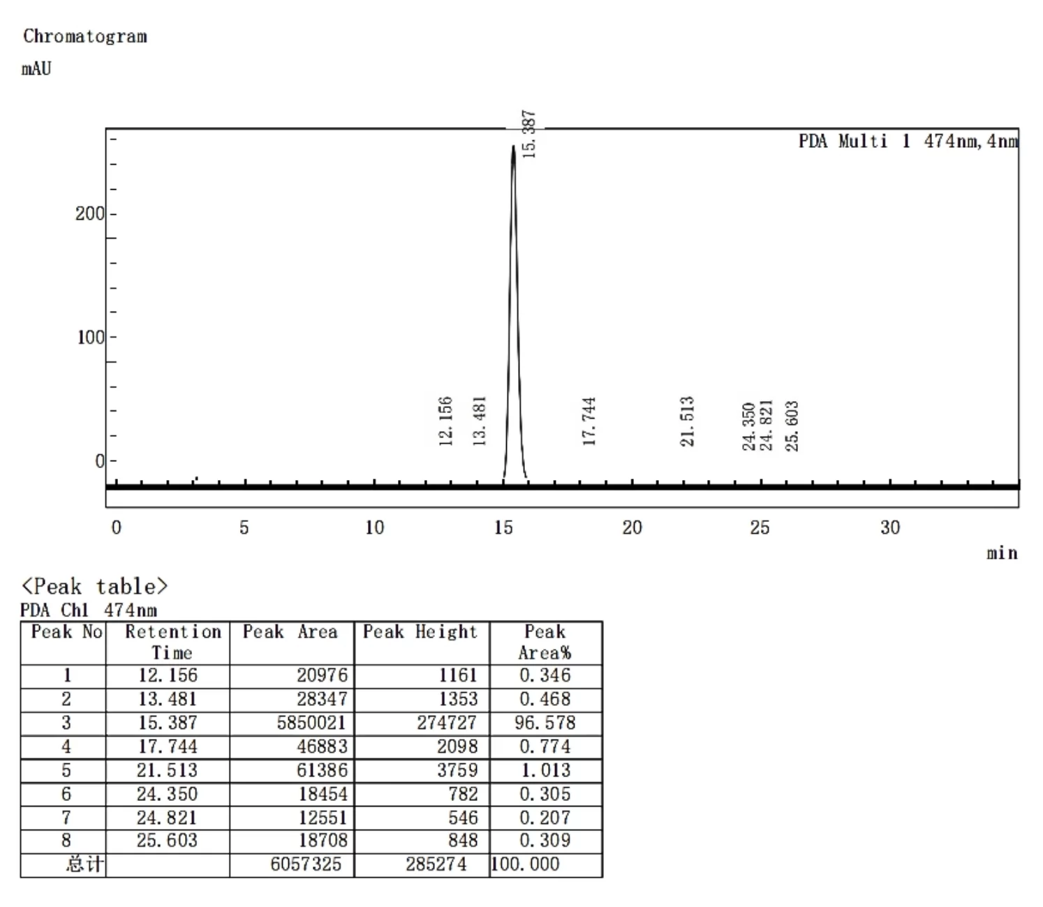 Using ultra-pure β-carotene as the substrate, canthaxanthin is synthesized via high-specificity immobilized enzyme catalysis. The enzyme preparation can be reused, leading to a reduction of the production cycle by over 30%. The entire process generates no unnecessary impurities, thereby enabling higher separation & purification efficiency and ensuring a final product purity consistently above 99.0%. Compared to traditional direct fermentation processes, it offers significant cost advantages. Simultaneously, compliant chemical synthesis processes are implemented to precisely match regulatory standards across different regions, ensuring suitability for diverse application scenarios.